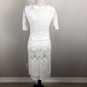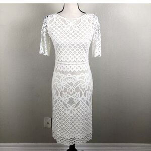 Maia Dress Womens 4 Off White Lace Sheer Lined Pencil Midi Cottagecore Feminine