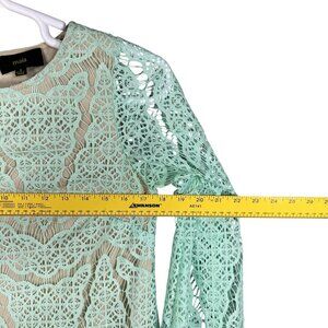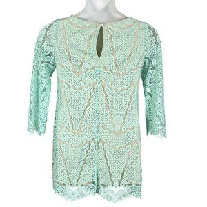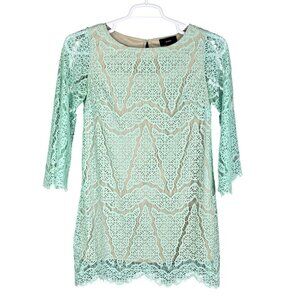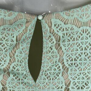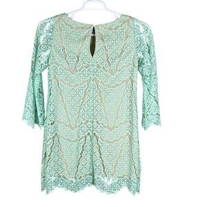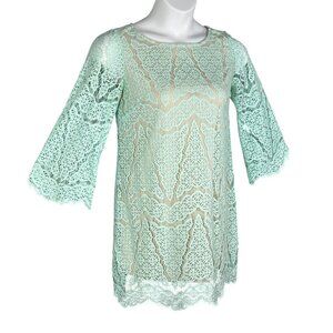 lace dress mint green short dress 3/4 sleeve dress scalloped lace hem keyhole back dress Maia tunic lace overlay dress size 4 dress elegant dress nude lined dress delicate lace womens dress mint lace dress