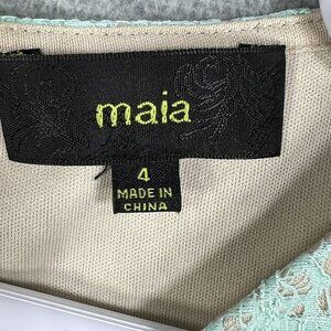 Maia Womens Size 4 Kelly Green Sheath Dress Lace Overlay 3/4 Sleeve Nude Lining Scalloped Hemline Dainty Angelcore Church Wedding Romantic