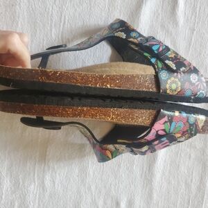 Maibulun Black Floral T-Strap Whimsical Colorful Boho Hippy Inspired Sz 9 Sandal