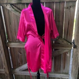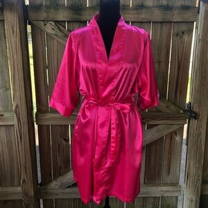 Maid of Honor Rhinestone Fuchsia Pink Satin Robe & Belt David’s Bridal Size S-M