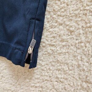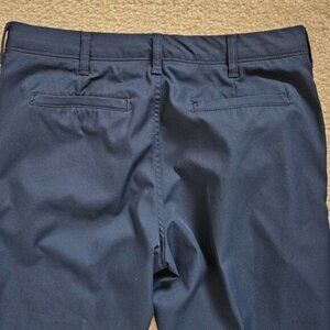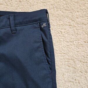 Men's ink blue Maide Bonobos golf pants feature UPF protection, a shirt-gripper waistband, a logo slide snap zipper, front slant pockets, and rear welt pockets.