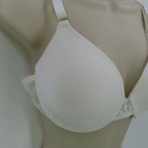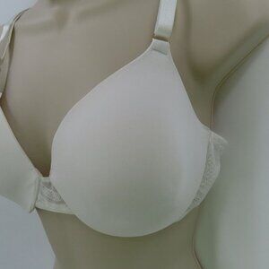 Maidenform 34D Bra 09621 Solid White Gold Underwire Lace Accent Lightly Lined