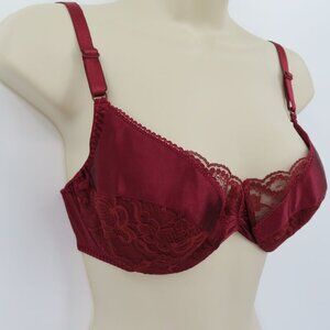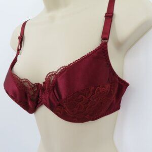 Maidenform 36B 9287 Lovely Lace Secret Red Flower Lace Underwire Bra Satin VTG