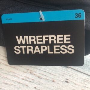Black, gathered in center, wireless, strapless,clear straps included, smoke and pet free home, colors may vary due to lighting,NWT, Size: 36, no cup size given, guessing a B
