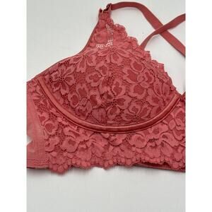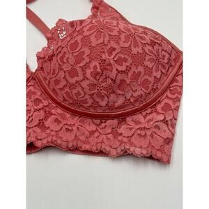 Maidenform Bralette Womens 38C Lace Longline Coral Pink Adjustable Straps Coral