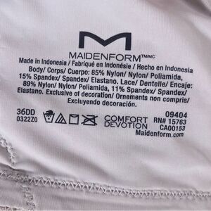 Maidenform Comfort Devotion Embellished Extra Coverage Bra (09404). The Maidenform Comfort Devotion Embellished Extra Coverage Bra 09404 has underwire, contour cups that are lightly padded for shape and support. Maidenform's Comfort Devotion Embellished Extra Coverage Bra features silky soft microfiber with lace trim along the tops of the cups and center panel.