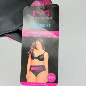 Maidenform Curvy Cooling Shaping Thong Firm Control Black Plus Size 3X NEW