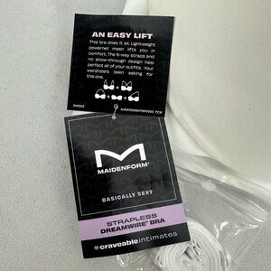 This Maidenform Dreamwire Strapless Bra offers natural lift and all-day comfort with lightweight powernet mesh. Includes adjustable straps for versatile styling options. New with tags.