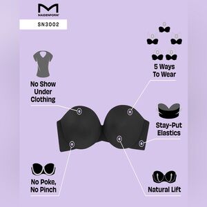 Brand NEW with tags Maidenform Dreamwire Strapless Padded Lift Underwire Bra Black Size 34C. Convertible style with removable straps which can be worn a variety of ways. Underwrire padded cups with natural lift, adjustable 4 hook back closure.