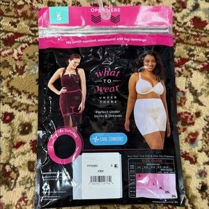 Black thigh slimmer with cool comfort technology. Provides all-over smoothing.