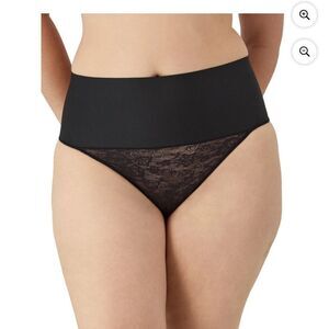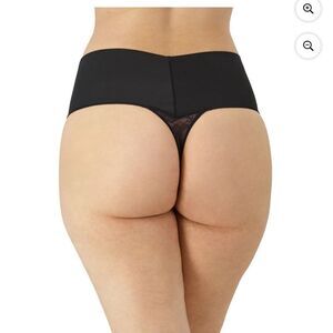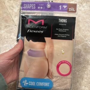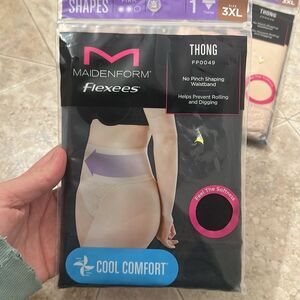Set of Maidenform Flexees thong shapewear. Includes black and beige colors. Designed for comfort and shaping.