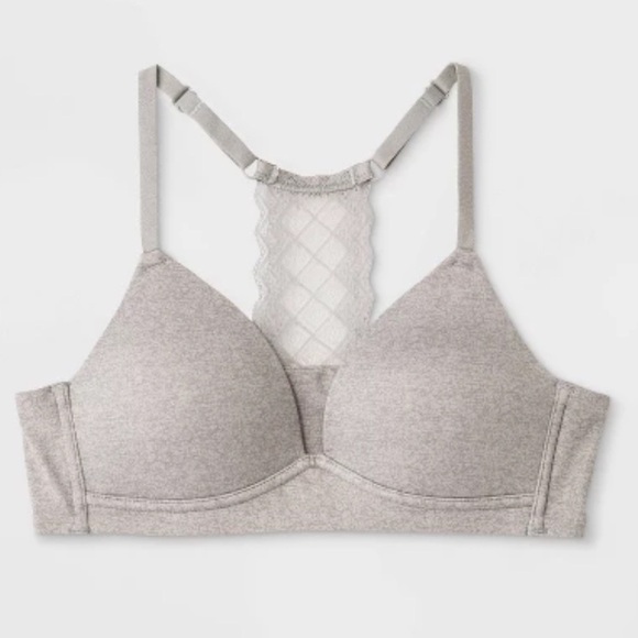 Maidenform Girls' Size 32A Pullover Padded Comfort Lace Bra Gray NEW