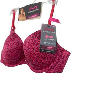 Maidenform Love The Lift Demi Coverage Push-Up Bra 36B Red-Pink Leopard Print