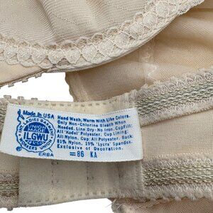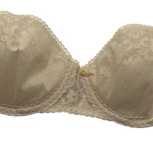 Maidenform Pretty Shapely Strapless Bra 34A Beige Lace Nylon Vintage Union Made