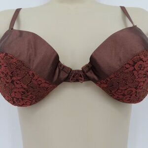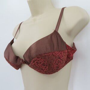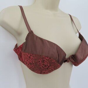 Maidenform Rendezvous 36B 8322 Brown Lace Satin Bow Underwire Padded Bra Vintage