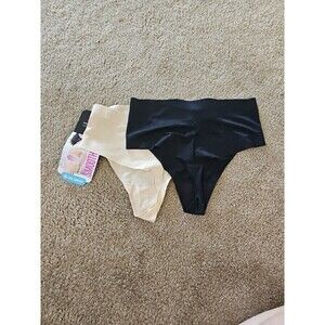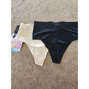Maidenform Self Expressions 2-pack Beige/black Thong Smooths CoolComfort NEW $24