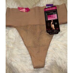 Maidenform Tame Your Tummy Thong Cool ComfortShapes Firm, shapewear panties, light brown/clay color, lace detail