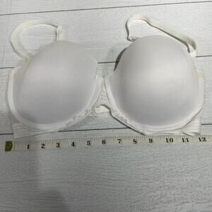 Experience comfort and elegance with this Maidenform White Demi Cup Bra. Featuring lightly padded cups for gentle shaping and support, this bra offers a flattering demi cup design that enhances your natural silhouette. The delicate lace back adds a touch of femininity and style, making it perfect for everyday wear or special occasions. Crafted with breathable fabric, it ensures all-day comfort without sacrificing support. This versatile bra pairs well under a variety of outfits, from casual tees to dressy blouses. Size: 36DD. Material: Polyester 91%, Spandex 9%. Made in Indonesia. Please see pictures for details and measurements.