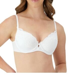 Experience the elegance of Maidenform's white lace bra, crafted for both style and comfort. This full coverage piece features molded cups and delicate lace detailing, making it a versatile addition to any lingerie collection. With adjustable shoulder straps and a subtle sheen, it ensures a perfect fit for everyday wear.