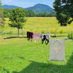 Hand washed & sanitized with mild soap, baking soda & vinegar. Air dried outside.