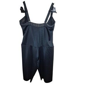 Pre-owned Maidenform shapewear bodysuit in black. Designed for smoothing and firm control under dresses or everyday wear. Adjustable straps and mesh panels provide comfort while offering shaping in the midsection and thighs.