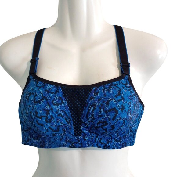 Maidenform Womens Cross-Back Blue Patterned Sports Bra Adjustable Straps Sz 36A