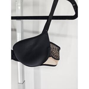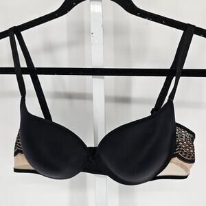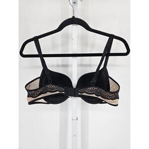 This is a Maidenform Women's size 36C Classic Lightly Padded T-Shirt Bra in Black with Beige Trim. It's in great condition and ready to provide you with all-day comfort and support.