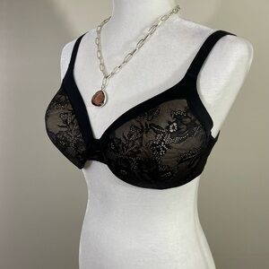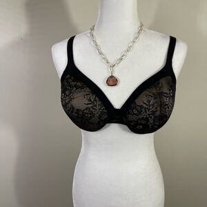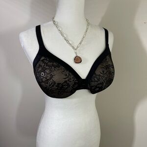 Maidenform sz 36D bra black lace over an off white fabric Moderate padding
