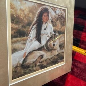 Maija 1993 Vintage Aspen Gold Native American Woman and Wolf Art Print 10x10