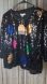 Color/Pattern- lined black sequins with multi color Christmas light pattern.