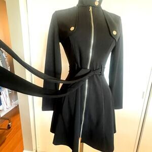 Main Strip Black Zip-Front Belted Dress Moto/Military Fit & Flare Size S