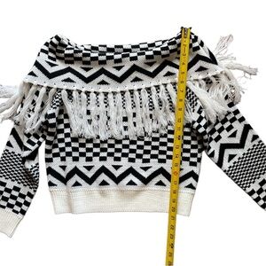 Main Strip Bohemian Crop Black And White Sweater. NWOT. Size Small