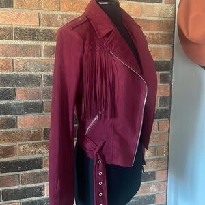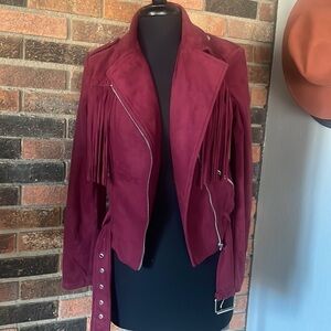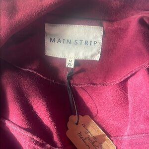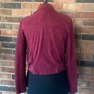 Stylish Main Strip Jacket. Rich burgundy color. Suede like with stretch. Perfect for any occasion.