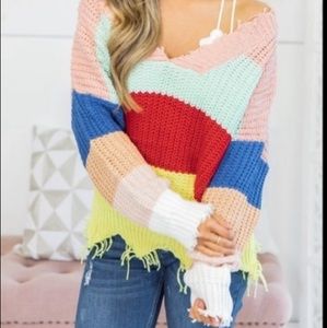 Main strip v neck sweater. Multicolored stripes. Worn once.