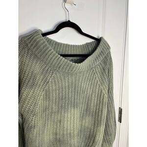 Main Strip Sage Green Off-Shoulder Chunky Knit Sweater Cozy Fall Medium Large