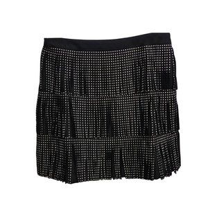 Main Strip Stud Fringe Black Mini Skirt LS40298