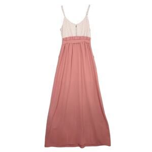 Main Strip Sz S Pink Striped High Waist Tie Belt Spaghetti Strap Maxi Dress Boho