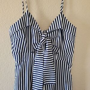Main Strip Wide Leg Crop Jumpsuit Sz Medium Tie Front Sleeveless Stripe Vacation
