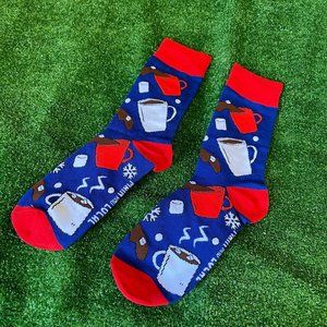 Main and Local Smooth and Creamy Hot Cocoa Blue Casual Crew Socks Size OS NEW