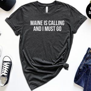 You won't be able to resist the siren call of the Maine Is Calling and I Must Go shirt from The Shirt Republic! This classic tee features that classic phrase in bold nostalgic lettering that will have you dreaming of the rocky coast and lobster rolls. Escape to Maine with this super-soft, comfortable shirt - you won't be able to resist!