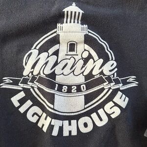 Maine Women's Lighthouse Cotton Preppy Nautical Coastal Chic Sweatshirt, sz S. Cozy navy blue sweatshirt with Maine Lighthouse graphic. Perfect for casual wear.
