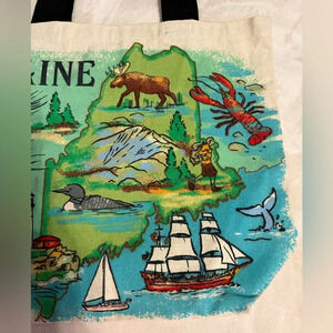Maine canvas tote bag shopping bag shoulder bag multipurpose bag with black straps NWOT Has beautiful pics of what Maine is known for & very colorful!! 17” wide x 15” long. SFPF HOME