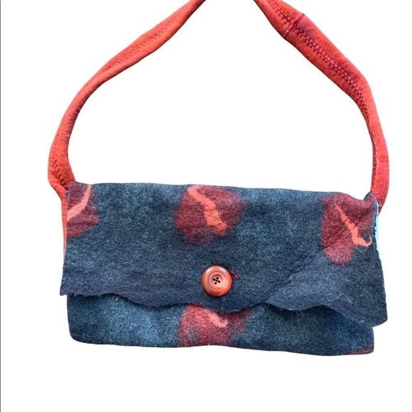 Maine made handcrafted fiber arts purse clutch bag from one lupine boutique in Bangor Maine! Beautifully made w a pocketed lining. Very unique!