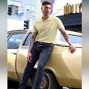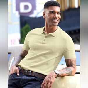 Mainfini Men's Knit Button Polo Shirts Beige XXL