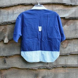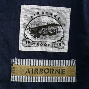 Mainframe Button-Down Shirt with the Airborn Theme Very Cute, Size Medium. Blue and White Stripe.