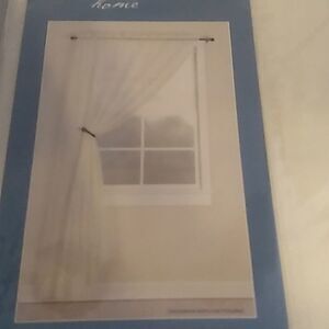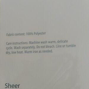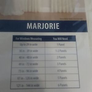 Pre-owned in new unused condition. Set of two sheer windows panels in oyster. The style is Marjorie. For windows up to 29 inches wide you will need 1 panel, for windows 30 inches -39 inches 1-2 panels and windows 40 inches -48 inches 2 panels . 100% polyester and machine washable using delicate cycle. Line dry or tumble dry low. One standard or decorative curtain rod is suggested.