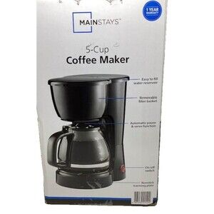 Mainstays 5 Cup Drip Coffee Maker Black Carafe Easy Fill Pause Filter Basket NEW