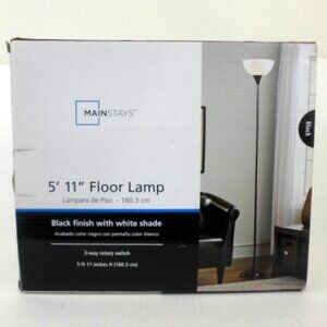 Brighten up any room with the Mainstays 71" JK1559BK plastic floor lamp. Featuring a classic black finish set on a 9 in sturdy plastic base. A 3-way socket switch allows you to choose the perfect amount of light for any situation, whether you need to brighten the entire room for guests or curl up with a book. This lamp uses a 150-watt incandescent light bulb or equivalent (not included). A white plastic lamp shade enhances the lamps minimal and classic silhouette allowing for just the right amount of ambient light. The sleek and modern design makes this lamp a perfect addition to any adult living room, bedroom, or home office and a must-have for young adult college living spaces.