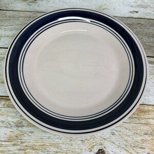 Mainstays CASUAL BANDED COBALT BLUE Rings Stoneware Beige Dinner Plates Set of 4